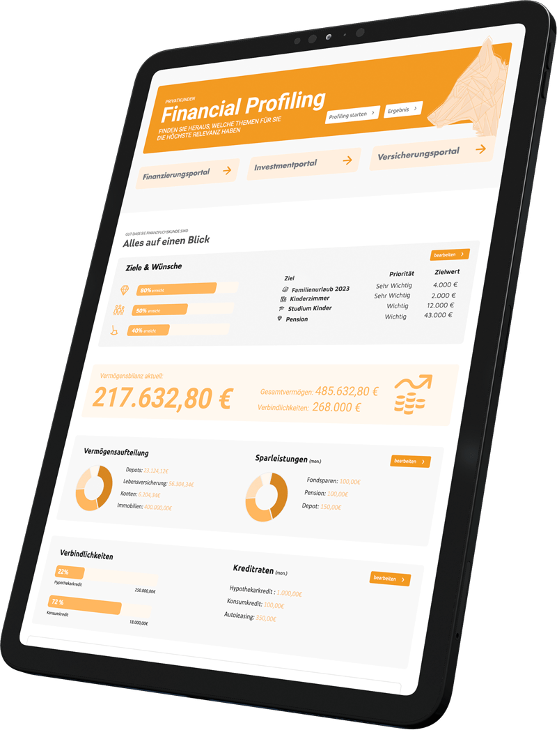 Wir bei Finanzfuchs setzen auf innovative Technologien und ein hybrides Beratungsmodell, um unseren Kunden einen erstklassigen Service zu bieten. Durch den Einsatz moderner Softwarelösungen und einer eigenen App ermöglichen wir unseren Kunden jederzeit einen umfassenden Überblick über ihre Finanzen. Diese digitale Plattform bietet nicht nur Transparenz und Flexibilität, sondern auch die Möglichkeit, direkt mit unseren Beratern in Kontakt zu treten und individuelle Finanzstrategien zu entwickeln. Unser Finanzfuchs-Beratungsmodell kombiniert persönliche Betreuung mit den Vorteilen der digitalen Welt, um unseren Kunden ein einzigartiges und maßgeschneidertes Beratungserlebnis zu bieten.